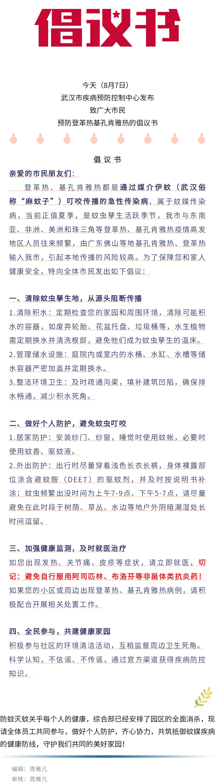 【路德·倡议】预防登革热基孔肯雅热,武汉疾控发布倡议书
