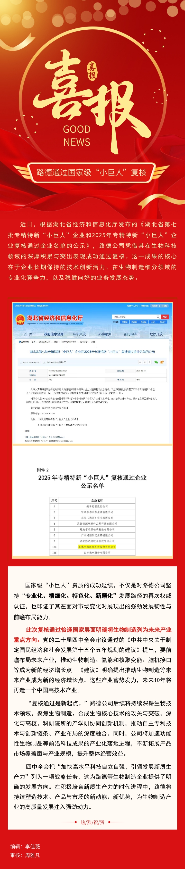 【路德·要闻】国家级认证!路德通过 2025年专精特新“小巨人”复核,彰显生物科技硬核实力